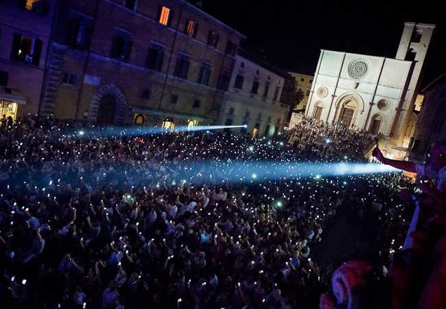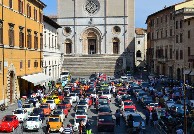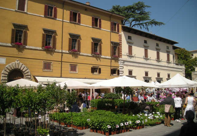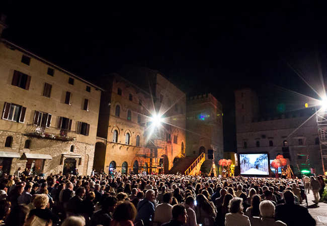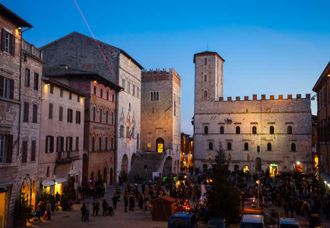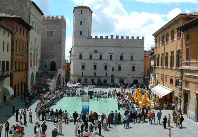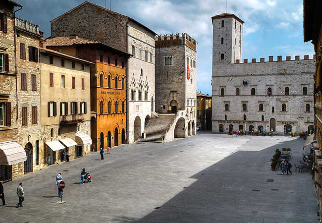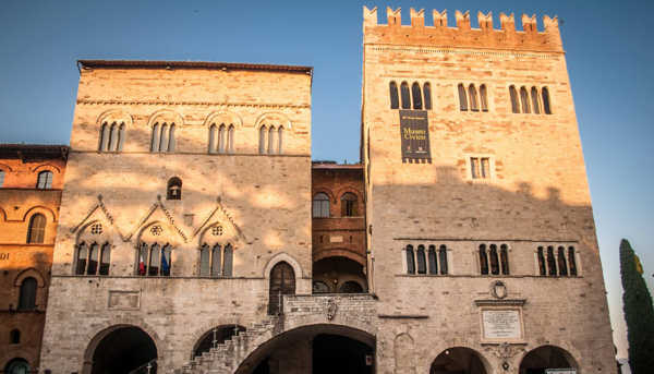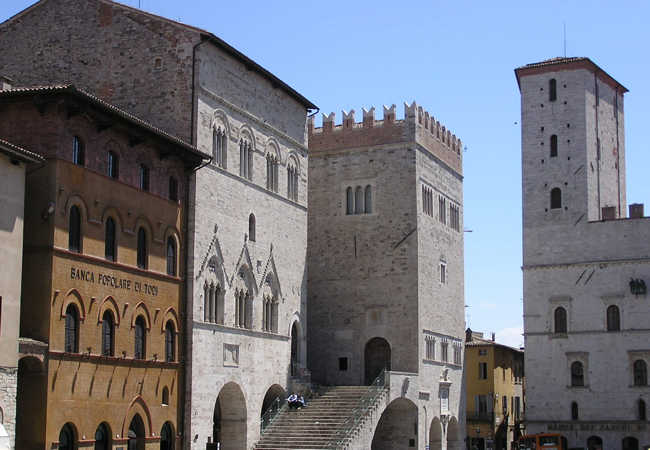 One of the oldest communal piazzas in Italy, the Piazza del Popolo ("People's Square") is a Lombard-Gothic construction existing at least since 1213. It is anchored by two great halls: the "Sala Grande Inferiore", or "Sala delle Pietre", and the "Sala Grande